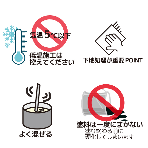 【重要】気温は5度以上で!(5度以下で施工すると硬化が低下します。)